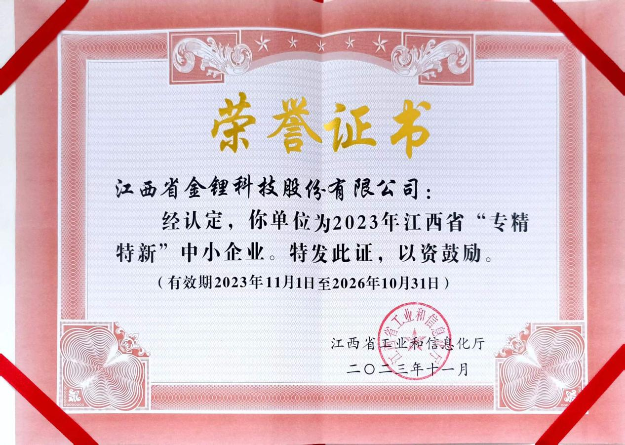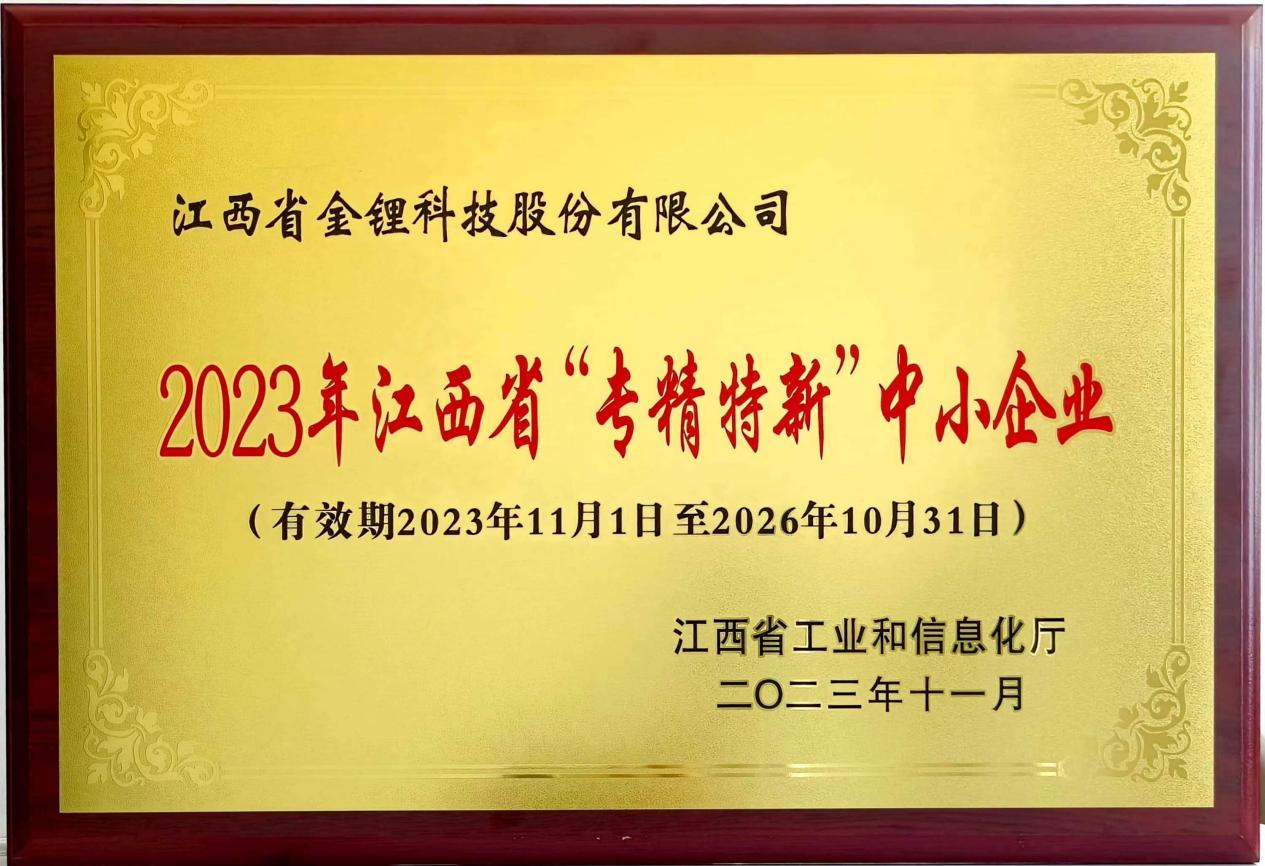 公海jcjc710金锂荣获江西省“专精特新”中小企业称号